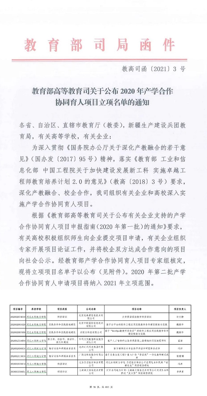 2021年3月4日,教育部高等教育司公布了2020年产学合作协同育人项目立项名单,华亿手机版共有8个项目入选。自2017年以来,华亿手机版连续四年获得产学合作协同育人项目立项支持。 产学研合作协同育人项目是全面深化新工科建设的重...