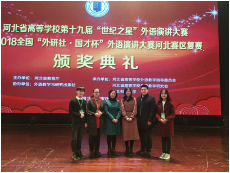 河北省第十九届“世纪之星”外语演讲大赛于2018年11月17-18日在河北师范大学成功举办,来自全省103所高校的410多名选手参加了比赛,华亿手机版共有四名选手参赛,其中,刘泽龙荣获青年教师组二等奖,造价201654班樊娇龙和国...
