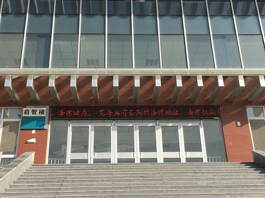 此外,学校充分利用楼宇显示屏、宣传栏、横幅等宣传宪法知识,播放宣传标语。掀起学法、守法的法制宣传热潮。
