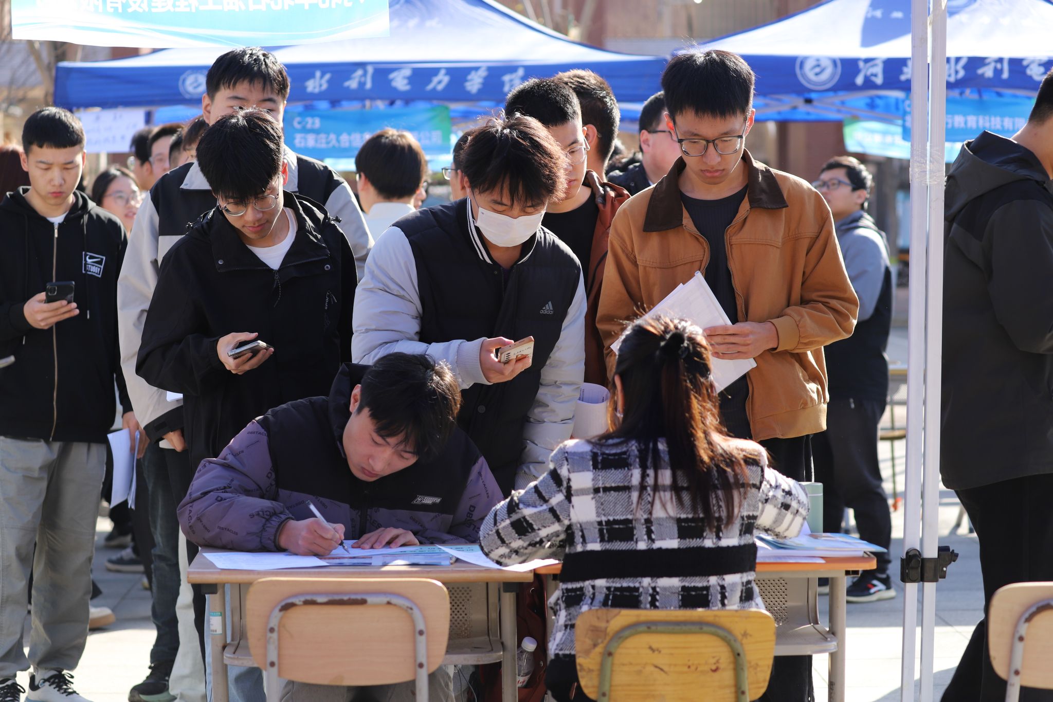 双选会现场汇聚了中国电建集团、中国能源建设集团、河北建工集团、河北省水利工程局集团有限公司、山东中车风电有限公司等央国企,以及远景动力技术(河北)有限公司、河北众燚核电装备有限公司、河北临港化工有限公司、河北鑫海化工集团有限公司等本地重点高新技术企业,其中工程类企业65家,制造业企业90家,与华亿手机版水利、电气、机械、自动化等专业高度匹配,体现了华亿手机版坚持对接产业需求,服务区域经济发展的工作特点。