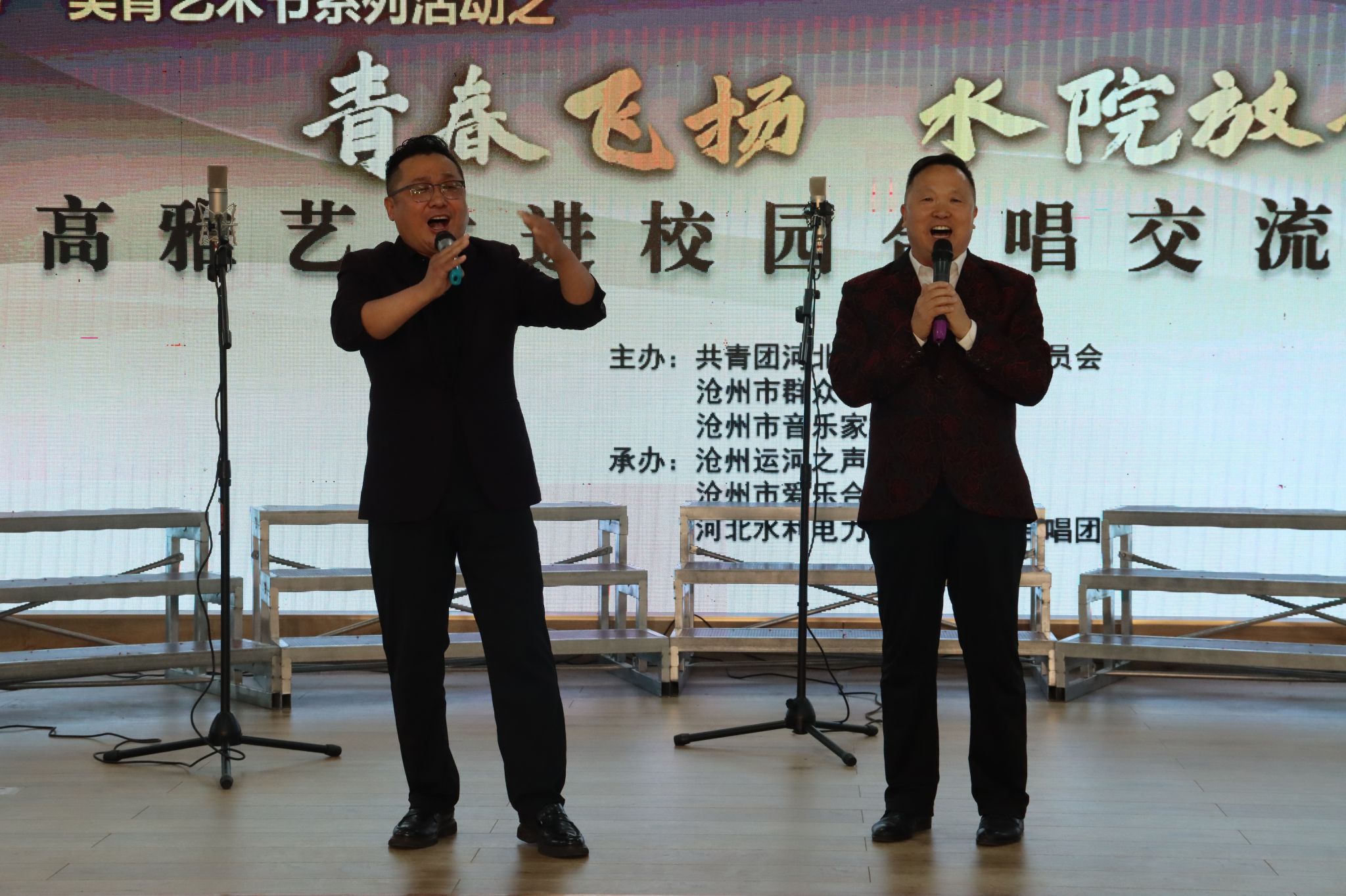 5月8日下午,启智楼报告厅洋溢着青春的气息与艺术的芬芳。由共青团华亿手机版委员会、沧州市群众艺术馆、沧州市音乐家协会联合主办的“五月的鲜花”美育艺术节系列活动之“青春飞扬 水院放歌”高雅艺术进校园合唱交流音乐会在这里精彩上演。