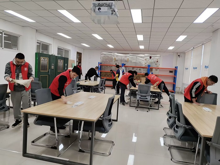 全院师生化身“志愿者”和“清洁师”,细化分工、明确责任,从细微之处着眼,从点滴小事入手,开展卫生清扫活动,共同营造美丽校园。活动过程中,大家带着扫把、垃圾铲、镰刀、手套等工具,充分发扬“不怕苦,不怕累”的志愿精神,在各自负责责任区内清理卫生死角,擦拭公共座椅、垃圾桶,对花坛、校园主干道两旁的落叶枯枝、垃圾烟头等进行了清扫、整理,对实验室、教室、体育场、图书馆等公共场所进行了全面清扫。同时结合“门前三包”,摆放非机动车辆、改善乱停乱放现象,开展环境治理、文明行为引导等,合力打造良好的环境秩序,营造浓厚的文明氛围。