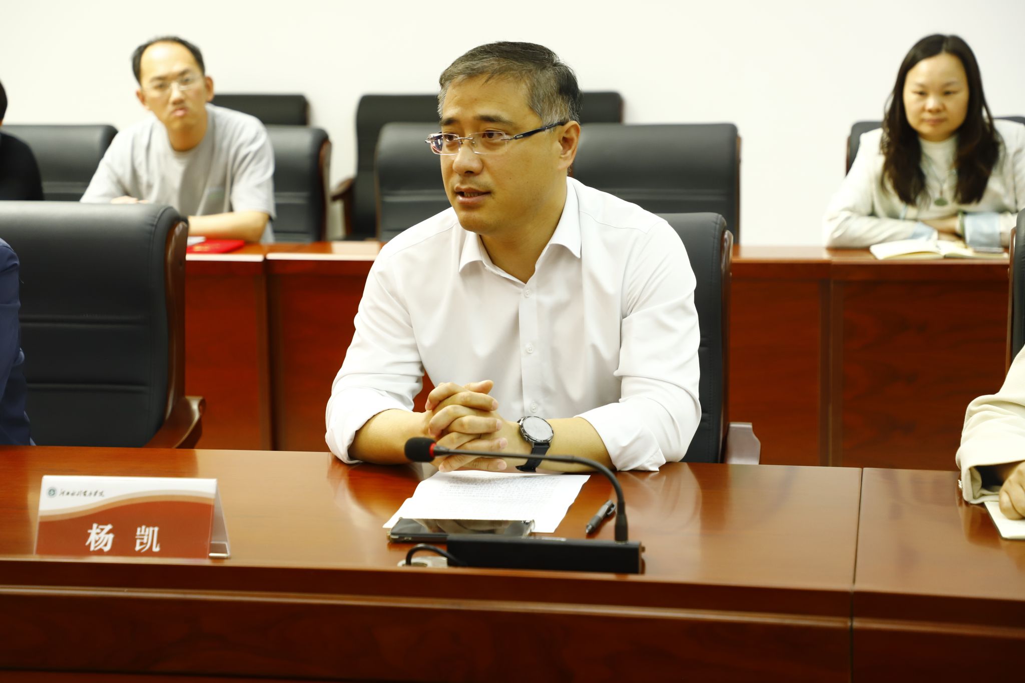 杨凯在总结讲话中对教职工文体协会的成立表示热烈祝贺,并对协会未来发展提出殷切期望。他强调,教职工文体协会是学校文化建设的一个重要组成部分,是提高凝聚力、增强教职工集体荣誉感的重要载体。作为第一批成立的协会要创新形式,注重品质,吸引更多教职工参与,积极挖掘学校文化内涵,打造具有水院特色的文体品牌,让协会真正成为教职工展示风采、提升自我的舞台。他表示,希望各协会加强自身建设,规范管理,丰富活动内容,大力弘扬传统文化,及时反馈教职工诉求,营造干事创业的浓厚氛围,汇聚力量,齐心协力为学校高质量发展蓄势赋能。
