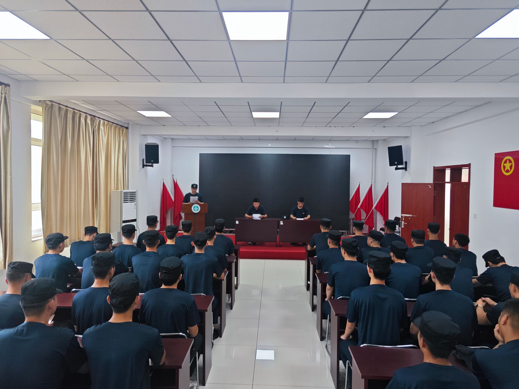训练期间,教官们斗志昂扬、姿态端正。烈日下他们反复磨练动作细节,夜色中认真学习理论、钻研教法。汗水浸透衣衫,口号响亮坚定,充分展现出不怕吃苦、勇于拼搏的顽强意志与过硬作风。退役大学生士兵代表范铄在发言中表示:“这次培训不仅是对军事素养的锤炼,更是对组织管理能力和意志品质的全面考验。我们将努力提升自我,以最佳状态带领2025级新生完成军训任务,为他们上好大学第一课。”