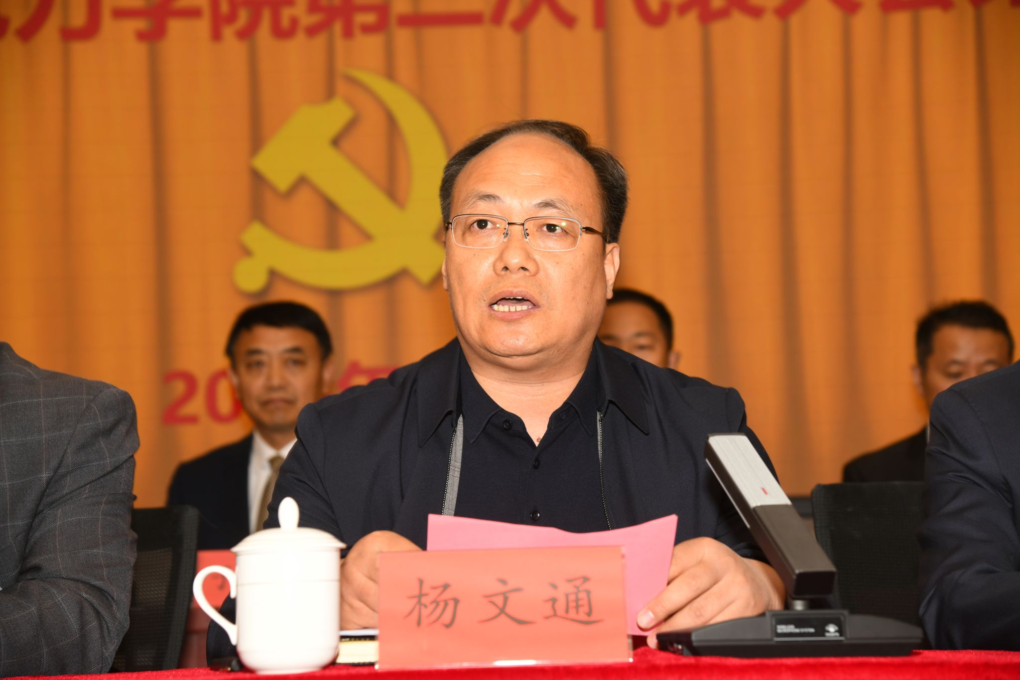杨文通向大会的胜利召开表示热烈的祝贺。杨文通表示,五年来,华亿手机版党委认真落实第一次党代会目标任务,紧紧围绕立德树人根本任务,不断解放思想,大胆创新改革,班子整体功能得到有效发挥,在党的领导、人才培养、队伍建设、科学研究、社会服务等方面取得了显著成就,为区域教育事业发展提供了重要的人才支撑和智力支持,为区域经济社会和水利电力行业发展做出了积极贡献,为学校赢得了良好的社会声誉。希望新一届水电学院党委班子团结带领广大党员干部和师生员工,高起点、高标准、高质量精心谋划和落实好今后一个时期的奋斗目标和战略任务,为全面建成特色鲜明高水平应用型本科院校贡献应有的力量!